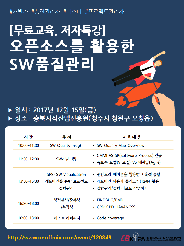 저희 진흥원에서 '오픈소스를 활용한 SW품질관리' 라는 주제로 교육을 개설하게 되었습니다.